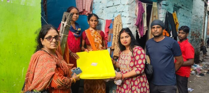 ने कमला नेहरू नगर स्लम एरिया में 15 परिवार वालों के बीच तिरपाल का वितरण किया।