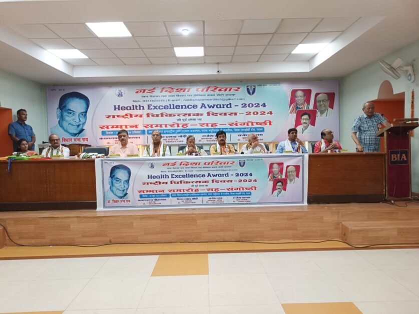 पटना, 30 जून जन-चेतना एवं जन-शिक्षा पर केन्द्रित स्वयंसेवी संस्था नई दिशा परिवार के तत्वावधान में आज रविवार को राष्ट्रीय चिकित्सा दिवस की पूर्व संध्या पर बिहार इण्डस्ट्रीज एसोसिएन के सभागार में संगोष्ठी-सह-सम्मान समारोह सम्पन्न हुआ। ख्यातिनाम चिकित्सक पद्मश्री डॉ० गोपाल प्रसाद सिन्हा ने समारोह की अध्यक्षता की जबकि कार्यक्रम का संचालन सचिव राजेश राज ने किया ।