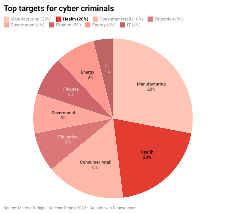 राज्य-प्रायोजित समूहों के अपवाद के साथ, साइबर अपराधी मुख्य रूप से वित्तीय लाभ से प्रेरित होते हैं। स्वास्थ्य देखभाल निस्संदेह सबसे आशाजनक लक्ष्यों में से एक है, क्योंकि अगर समझौता किया जाता है, तो संगठनों को फिरौती का भुगतान करने की अधिक संभावना होती है – अंततः, क्योंकि जीवन दांव पर होता है।