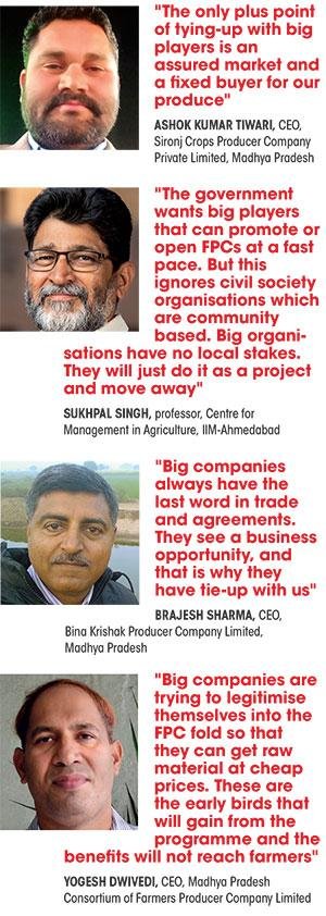 Farmers say the real purpose of CBBOs for helping FPCs is to get cheap raw material. “Earlier, big companies never made efforts to organise farmers. They are doing it now to get raw material at cheap prices. But the purpose of FPCs was to help farmers—not big companies—get more money,” said Yogesh Dwivedi, CEO of Madhya Pradesh Consortium of Farmers Producer Company Limited, a conglomerate of FPCs.