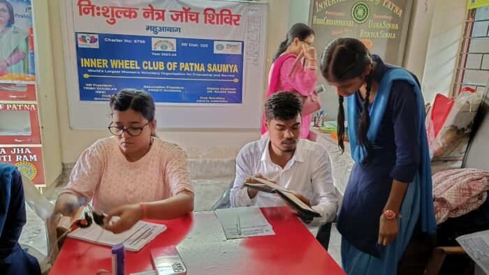 महुआ बाग स्कूल की छात्रों ,उनके माता-पिता और पटना के निवासियों के बीच नेत्र स्वास्थ्य और कल्याण को बढ़ावा देने के प्रयास में, इनर व्हील क्लब ऑफ पटना सौम्या ने प्रसिद्ध नेत्र रोग विशेषज्ञ डॉ. उत्कर्ष भारद्वाज और उनकी टीम के सहयोग से हुआ।नेत्र जांच शिविर को बढ़ावा देने के लिए और रागिनी दी के जन्मदिन के उपलक्ष्य में पोस्टर भी लगाया गया।