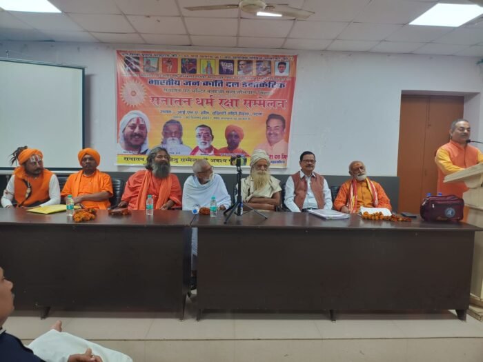 धार्मिक न्यास बोर्ड के समाप्त होने और सरकारी नियन्त्रण से मठ मन्दिरों के मुक्त होने तक संघर्ष जारी रहेगा – आगामी विधानसभा चुनाव में बिहार में होगा साधू मुख्यमंत्री। उक्त बातें रविवार को पटना के इंडियन मेडिकल एसोसिएशन (आई एम् ए) हॉल में भारतीय जन क्रांति दल डेमोक्रेटिक के राष्ट्रीय महामंत्री डॉ राकेश दत्त मिश्र ने कही।