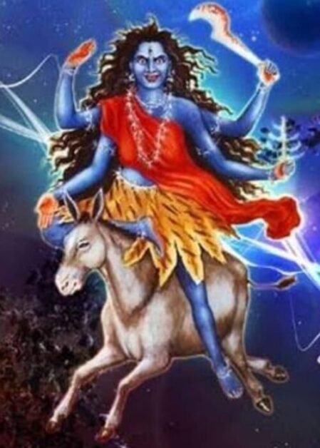 एकवेणी जपाकर्णपूरा नग्ना खरास्थिता, लम्बोष्टी कर्णिकाकर्णी तैलाभ्यक्तशरीरिणी।